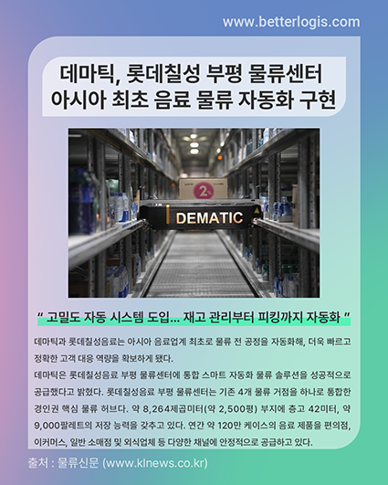데마틱과 롯데칠성음료는 아시아 음료업계 최초로 물류 전 공정을 자동화해, 더욱 빠르고 정확한 고객 대응 역량을 확보하게 됐다.