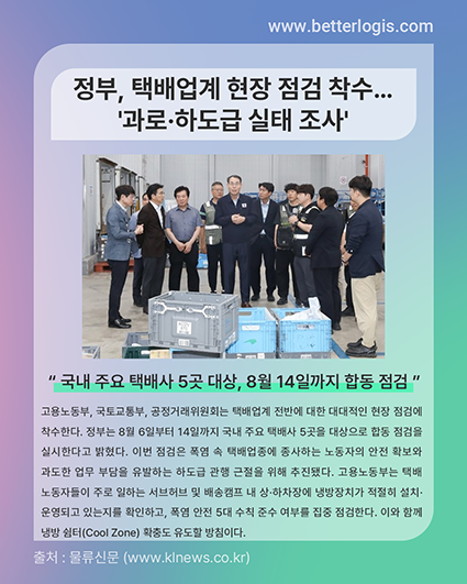 정부는 8월 6일부터 14일까지 국내 주요 택배사 5곳을 대상으로 합동 점검을 실시한다고 밝혔다.