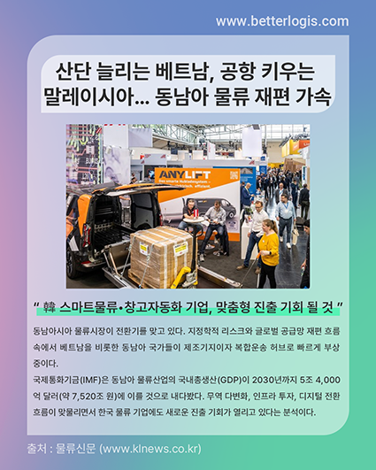 국제통화기금(IMF)은 동남아 물류산업의 국내총생산(GDP)이 2030년까지 5조 4,000억 달러(약 7,520조 원)에 이를 것으로 내다봤다. 무역 다변화, 인프라 투자, 디지털 전환 흐름이 맞물리면서 한국 물류 기업에도 새로운 진출 기회가 열리고 있다는 분석이다.