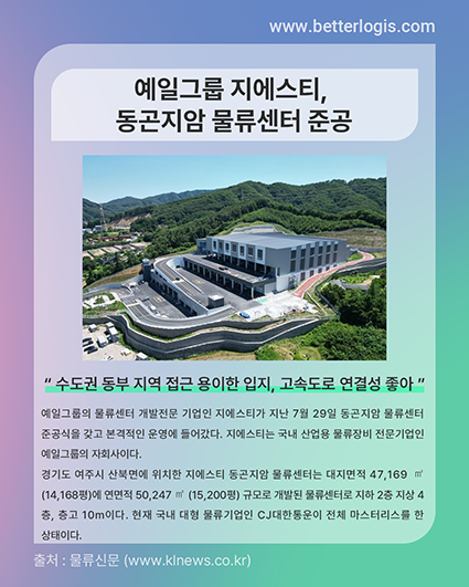 예일그룹의 물류센터 개발전문 기업인 지에스티가 지난 7월 29일 동곤지암 물류센터 준공식을 갖고 본격적인 운영에 들어갔다. 지에스티는 국내 산업용 물류장비 전문기업인 예일그룹의 자회사이다.